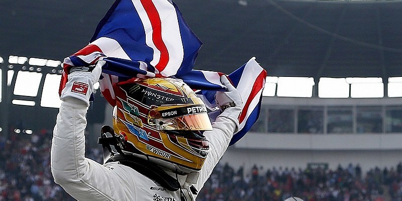 O inglês da Mercedes se chocou com o alemão Vettel na primeira volta, chegou em nona colocação e garantiu o quarto título mundial.